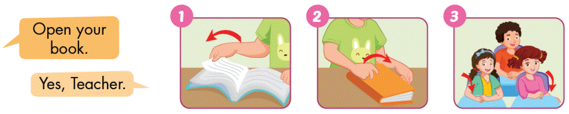 (Các em mở sách ra. – Vâng, thưa cô.)