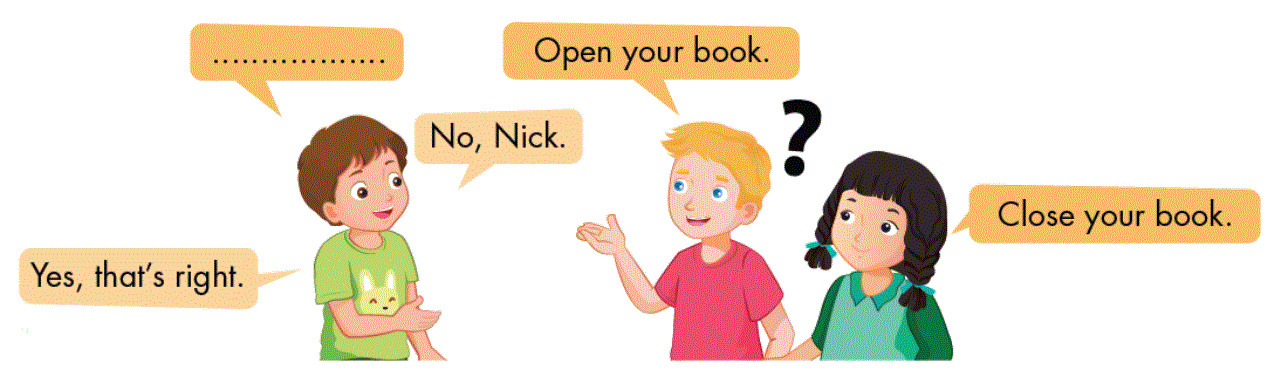 Ví dụ: Bạn quản trò sẽ nói thầm một hành động, bạn trai sẽ đoán “Open your book.”, bạn gái đoán “Close your book.”. Nếu đúng quản trò sẽ nói “Yes, that’s right.”, sai quản trò nói “No.”