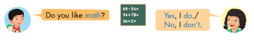 2. A: Do you like math? (Bạn có thích môn toán không?)