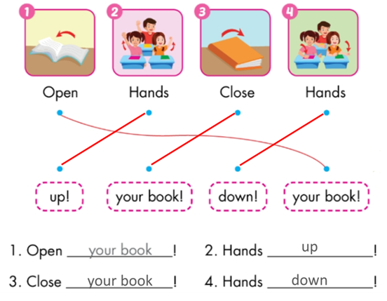 – Okay everyone. Close your books. (Nào các con. Đóng sách lại.)