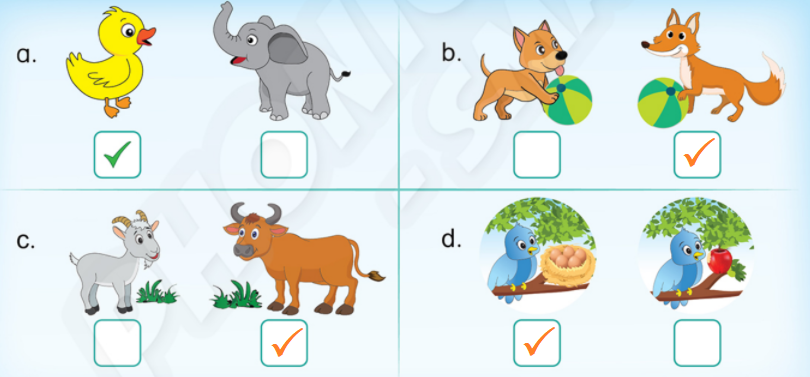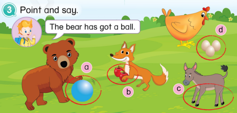 Học sinh nhìn tranh và chỉ vào từng con vật ròi sử dụng cấu trúc sau để miêu tả: