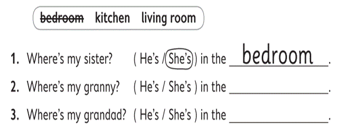He’s in the. (Ông ấy ở trong phòng ngủ.)