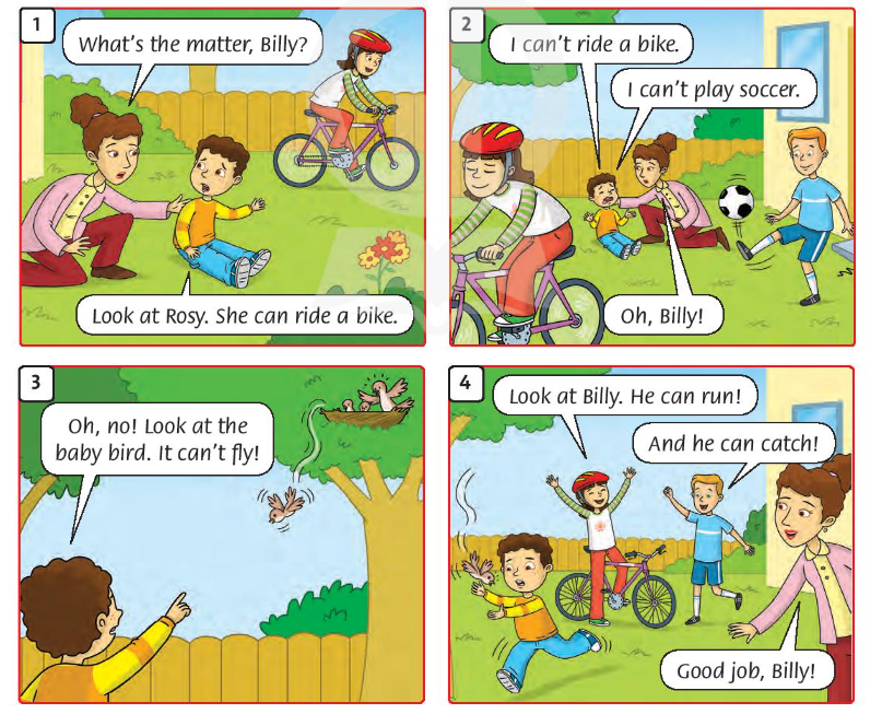 3. Oh, no! Look at the baby bird. It can’t fly! (Ồ, không! Hãy nhìn con chim non kìa. Nó không thể bay!)