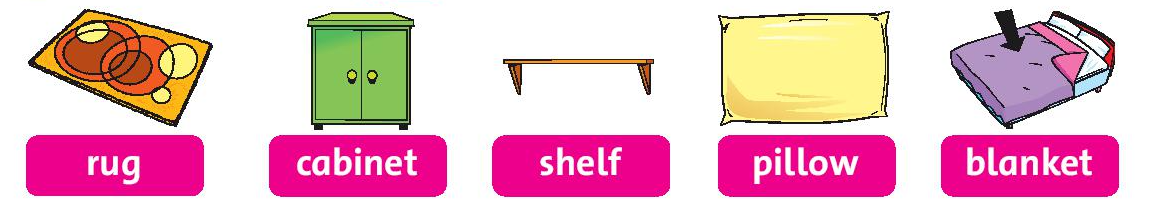 1. Look, there’s a doll on the rug. There are some books under the bed.