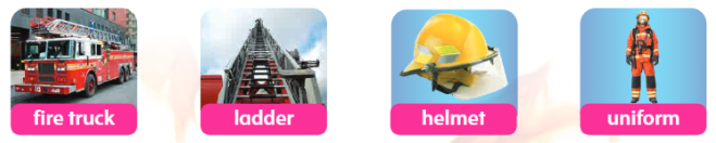 Listen, point, and repeat. Listen and read. Read again and write. What things does a firefighter need to fight fires? Make a checklist.