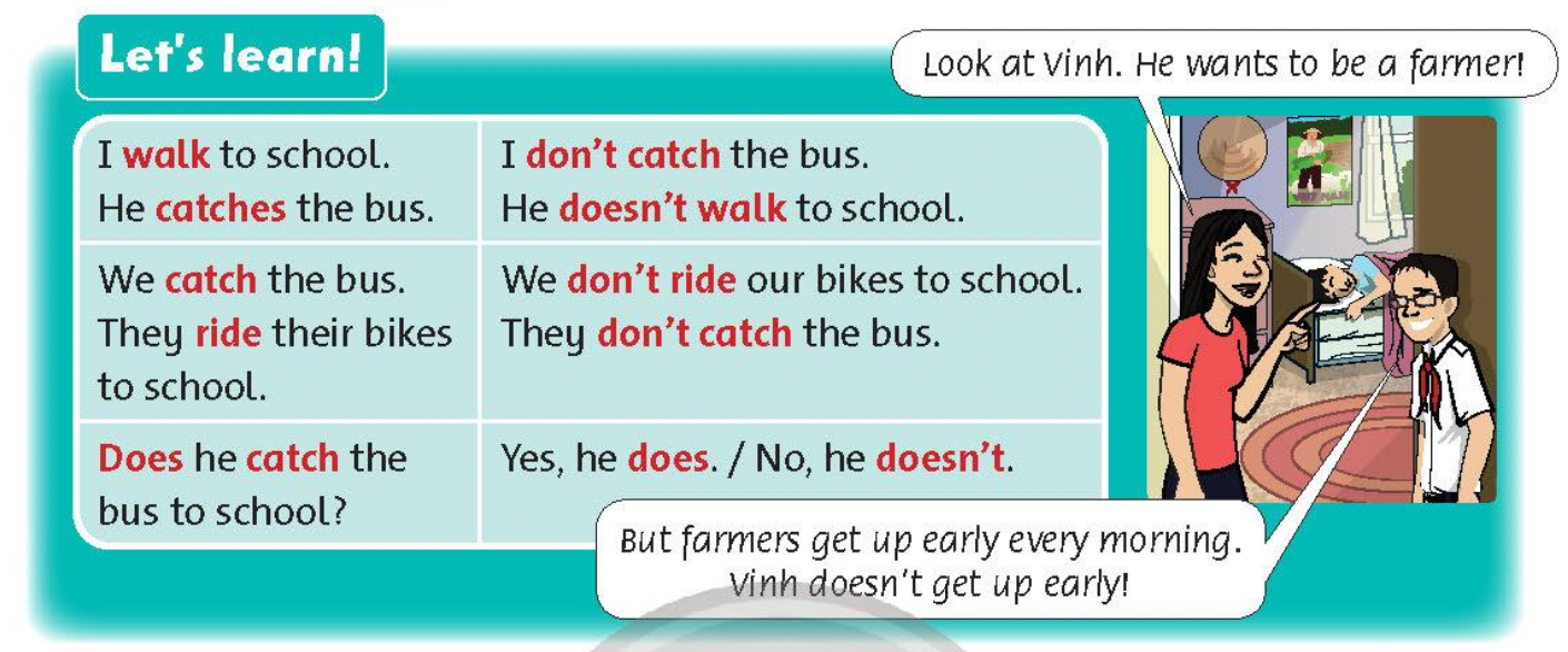 B: But farmers get up early every morning. Vinh doesn’t get up early.
