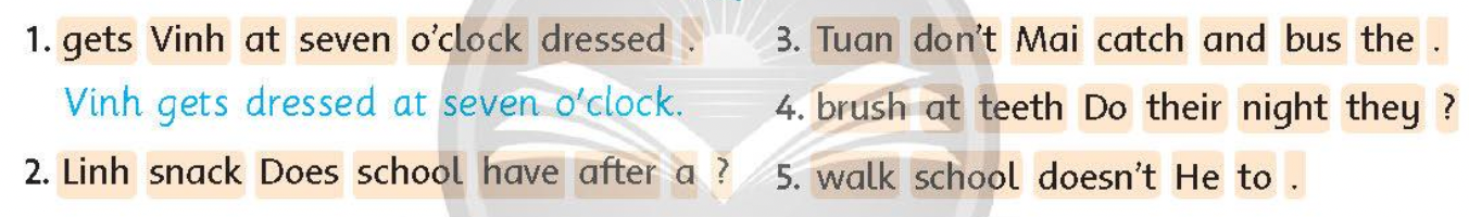 (Viết các từ theo thứ tự đúng.)