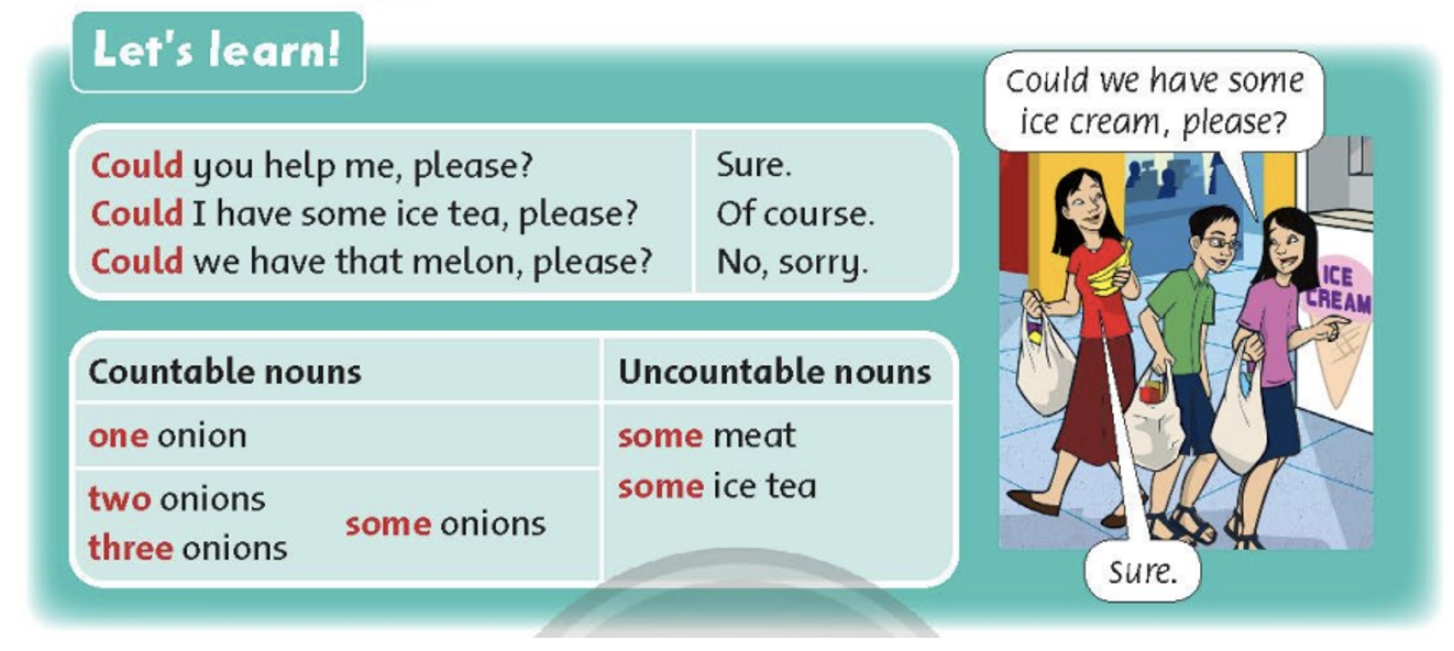 Ta có thể thêm số đếm vào phía trước danh từ đếm được, không thể thêm vào trước danh từ không đếm được. Có thể thêm “some” phía trước danh từ không đếm được.