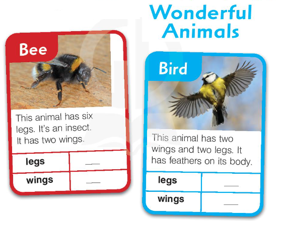 Bee: This animal has six legs. It’s an insect. It has two wings.