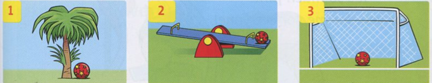 + Where’s the ball? => It’s on the goal.