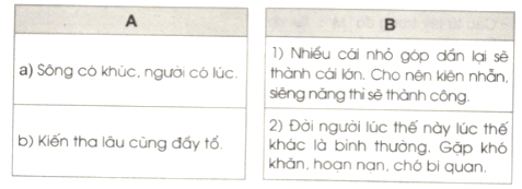 Nối mỗi câu tục ngữ ở cột A với nghĩa và lời khuyên thích hợp ở cột B