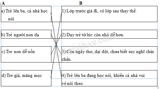 Nối thành ngữ, tục ngữ ở bên với nghĩa của nó ở bên B :