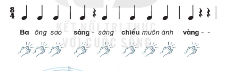 Vận dụng cách vỗ đã học ở bài Dàn nhạc trong vườn, hãy cùng đọc lời ca và vỗ tay theo hình tiết tấu dưới đây