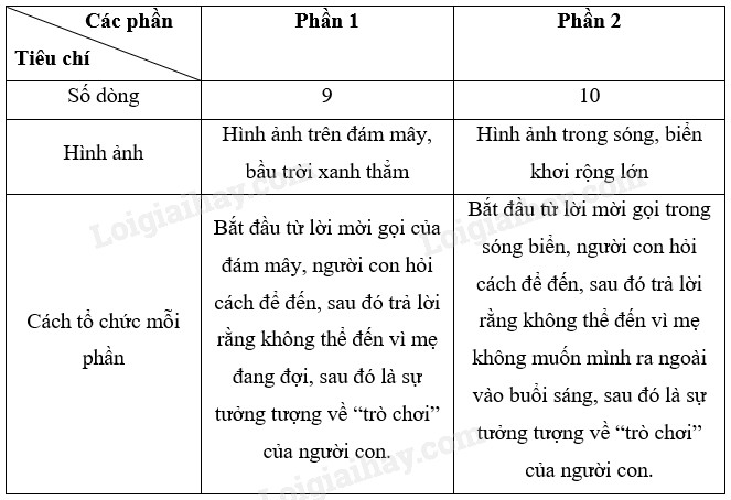 – Về hình thức, bài thơ Mây và sóng khác so với các văn bản ở học ở bài 2 là sử dụng thể thơ tự do, hầu như không có gieo vần, có những câu thơ rất dài lên đến 28 chữ.