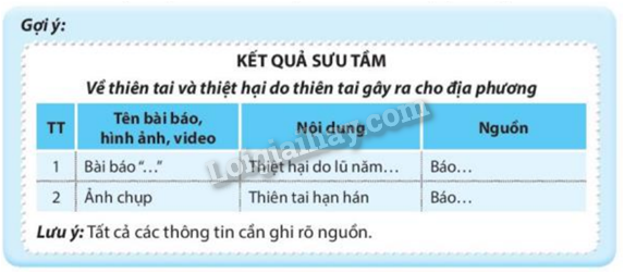 Phương pháp giải: Tìm hiểu và sưu tầm về các thiên tai ở địa phương phân loại và thiết kế.