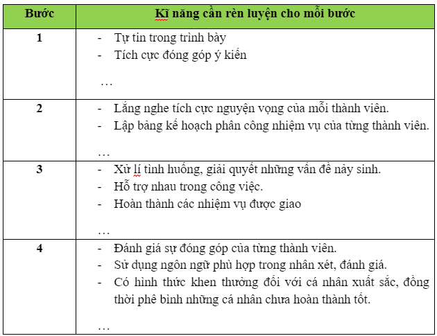 + Kĩ năng cần rèn luyện cho mỗi bước là gì ?