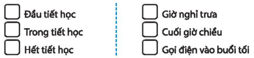 Đánh dấu X vào ô trước những thời điểm phù hợp để gặp thầy cô trao đổi về điều em cần.