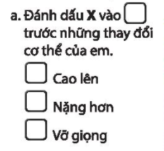 a. Đánh dấu X vào ô trống trước những thay đổi cơ thể của em.