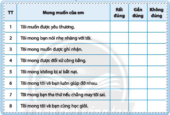 a. Đánh dấu X vào mức độ phù hợp nhất với mong muốn của em.