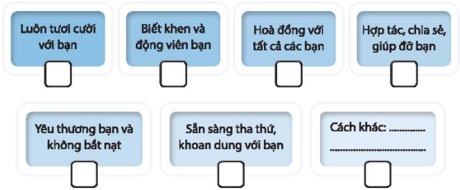 b. Đánh dấu X vào ô trống dưới những biện pháp em đã thực hiện để giúp mọi người vui vẻ.