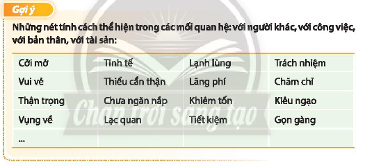 Lựa chọn và sắp xếp những từ thể hiện nét tính cách của em theo các mối quan hệ phù hợp.