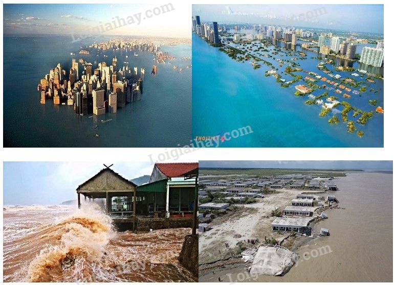 + Dự kiến vào cuối thế kỉ tới, mực nước biển sẽ tăng lên trong khoảng 35 – 85 xăng-ti-mét, gây thiệt hại cho kinh tế toàn cầu hàng ngàn tỉ đô la Mỹ và nhiều hệ lụy về phát triển.
