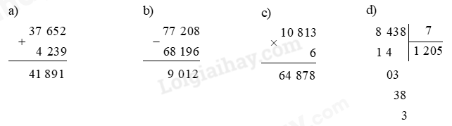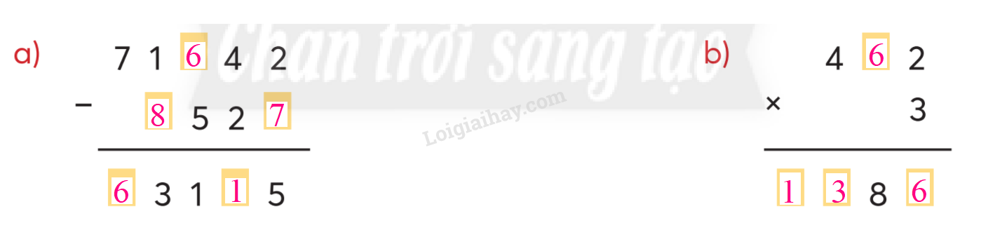 a) Thực hiện đặt tính rồi tính để tìm kết quả.