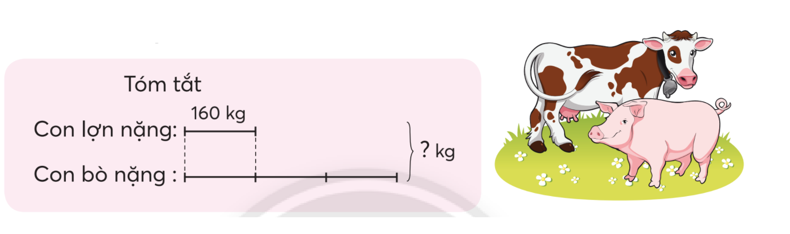 Bước 1: Tính cân nặng con bò bằng cách lấy cân nặng con lợn nhân với 3.
