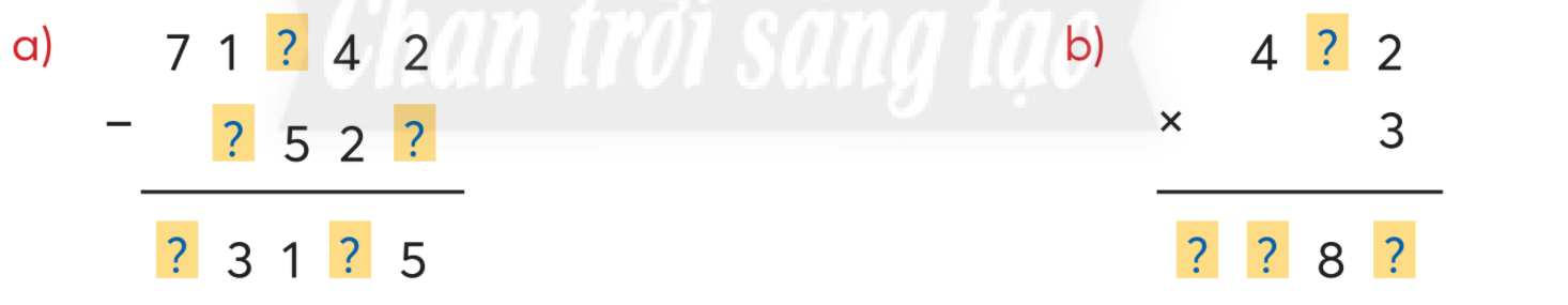 Dựa vào quy tắc đặt tính, nhẩm và tìm ra chữ số thích hợp với dấu “?” ở mỗi ô.