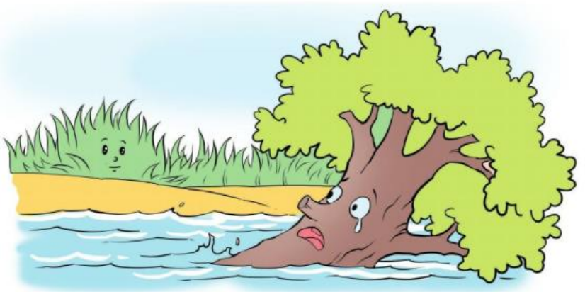 Có một cây sồi mọc ở ven sông. Nó cao lớn sừng sững nên rất xem thường những cây sậy bé nhỏ dưới chân mình.