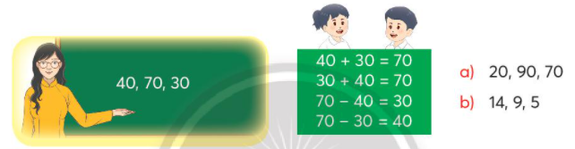 Quan sát ví dụ mẫu rồi viết các số đã cho thành phép cộng và phép trừ thích hợp.