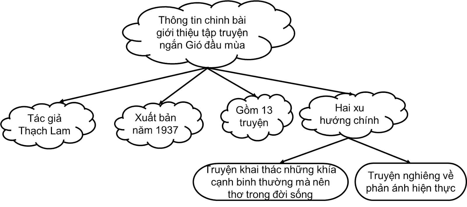 Xác định các nội dung thông tin chính của bài giới thiệu tập truyện ngắn Gió đầu mùa, từ đó, trình bày lại bằng một sơ đồ.