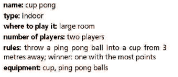2. a) list the note under the headings name, type, where to play it, number of players, rules and equipment.