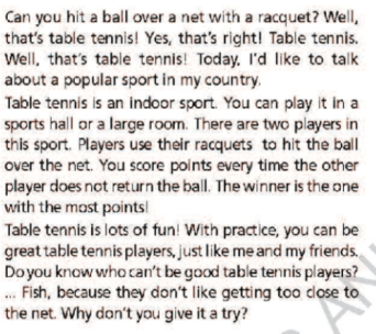 1. Read the extracts. Decide which are beginnings and which are endings. Which sets the scene? Use humour? Address the reader directly? Uses a picture? 2. a) list the note under the headings name, type, where to play it, number of players, rules and equipment. b) Think of a pupolar sport in your country and make notes using your own ideas under headings in Exercise 2a. 3. Use the notes in Exercise 2a or 2b to prepare your presentation.