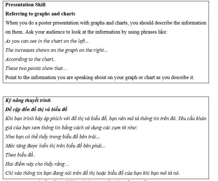 (Thực hành bài thuyết trình của bạn với một đối tác. Hãy nhớ sử dụng các cụm từ trong hộp Kỹ năng thuyết trình.)