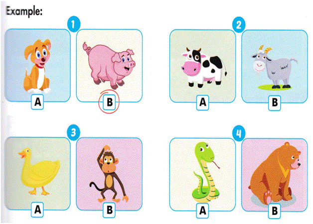 Cách chơi: 1 người sẽ đọc tên 1 con vật, ví dụ “cow” (con bò) thì người chơi phải nghe thật nhanh và chạm vào hình con bò trên bảng và nói thành 1 câu “It’s a cow.” (Nó là con bò.). Ai nhanh hơn người đó thắng.