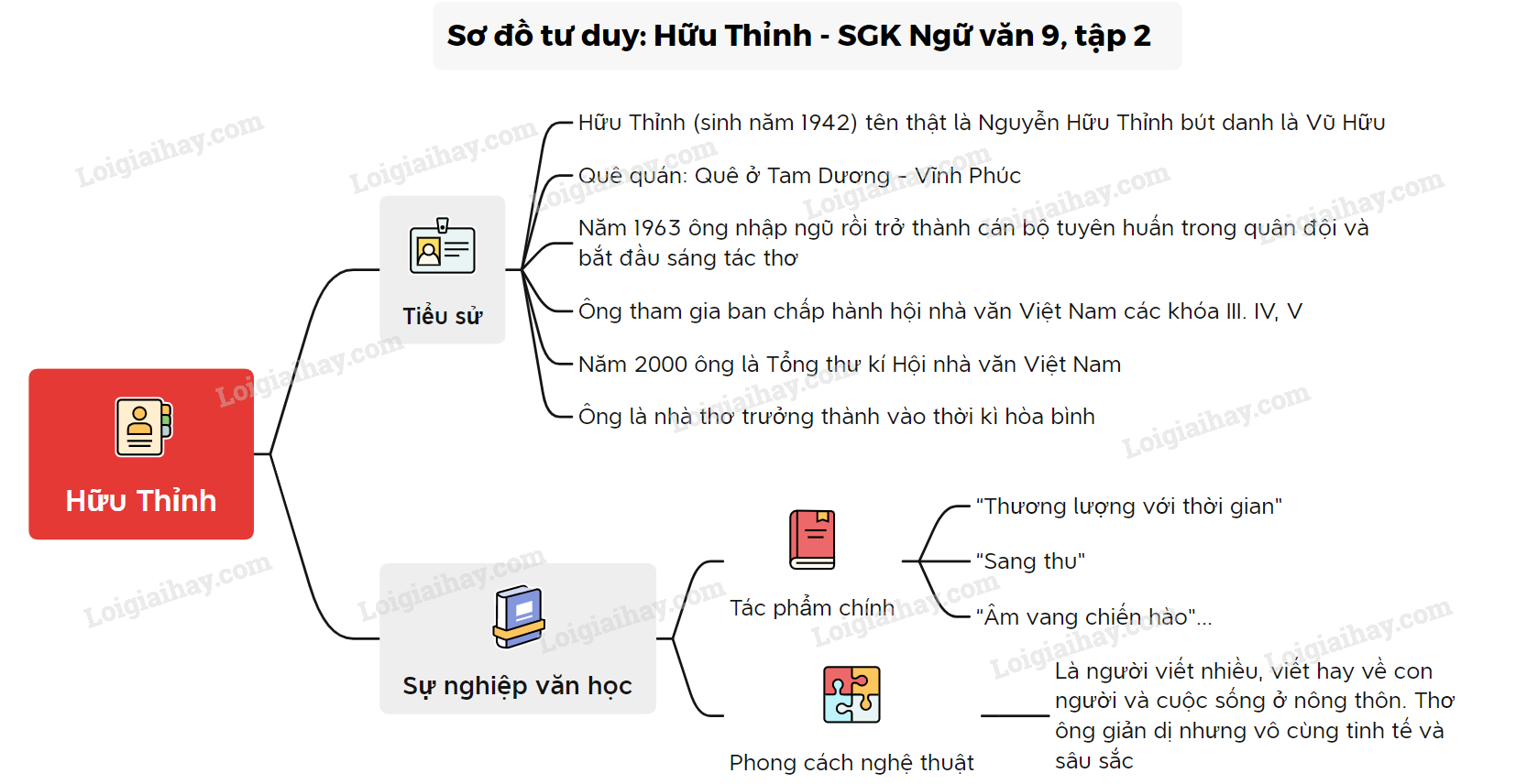 Sơ đồ tư duy về tác giả Hữu Thỉnh: