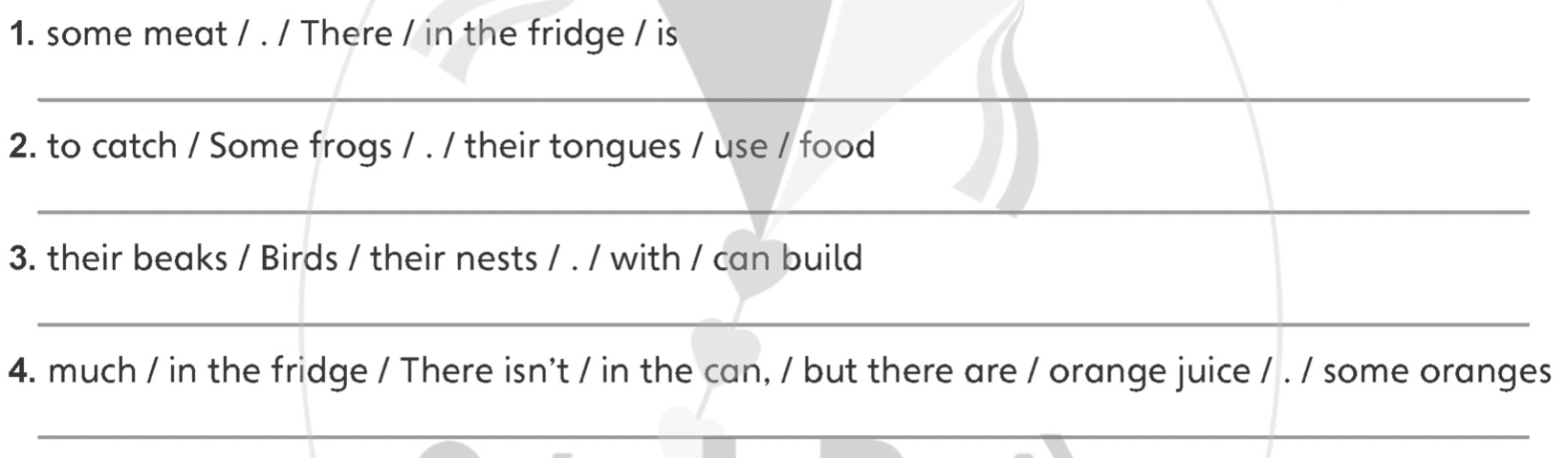 2. Reorder the words. Write the sentences.