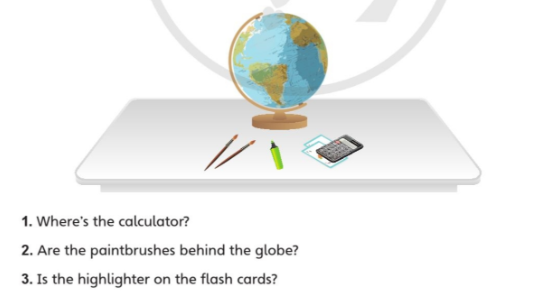 2. Are the paintbrushes behind the globe? (Những cái cọ vẽ ở đằng sau quả địa cầu phải không?)