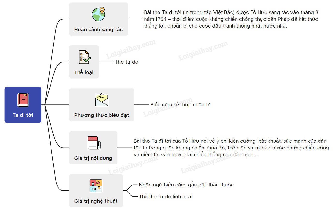 Sơ đồ tư duy bài thơ Ta đi tới: