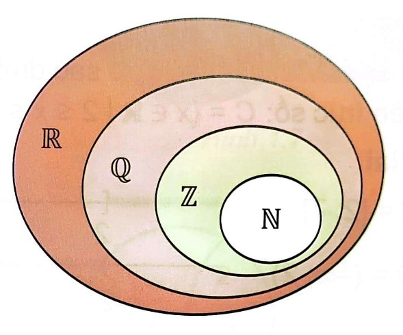 \(\mathbb{N} \subset \mathbb{Z} \subset \mathbb{Q} \subset \mathbb{R}\)