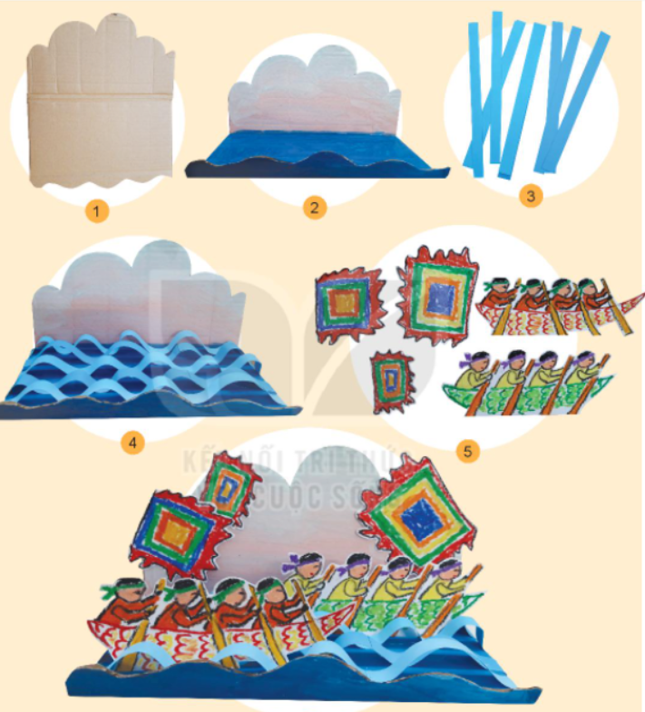 Bước 5: vẽ hình lá cờ trong lễ hội, đoàn thuyền và cắt ra