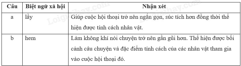Chỉ ra biệt ngữ xã hội trong các đoạn hội thoại sau và nhận xét về việc sử dụng biệt ngữ của người nói: