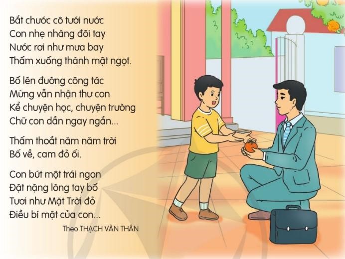 Điều bí mật của bạn nhỏ là quả cam do chính tay bạn trồng. Điều bí mật đó là thành quả sau thời gian dài bạn nhỏ chăm sóc, cây cam đã ra hoa và kết trái quả ngọt.