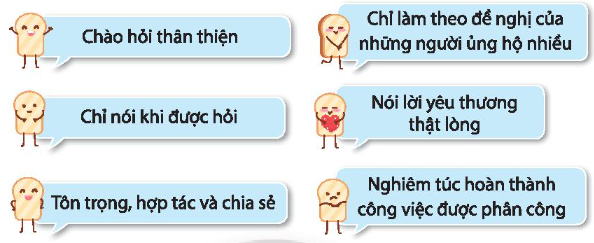 Em lựa chọn những cách ứng xử thân thiện từ những cách ứng xử được nêu.