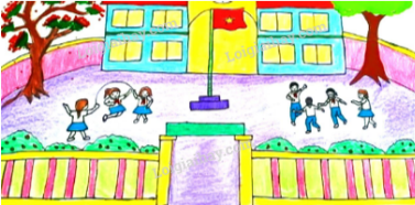 Vẽ tranh khu vực trường học và làm theo hướng dẫn