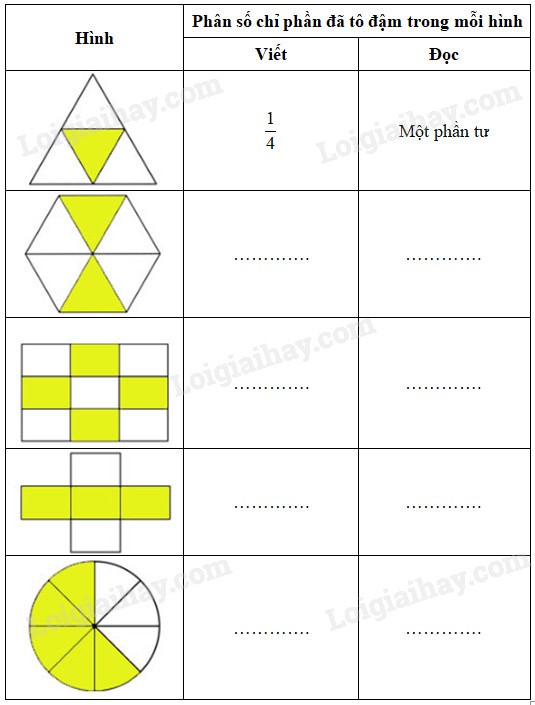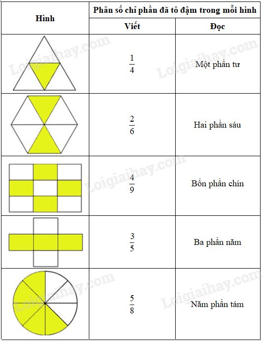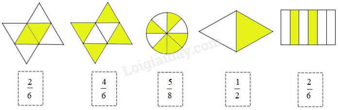 Tô màu để được hình tương ứng với phân số (theo mẫu):