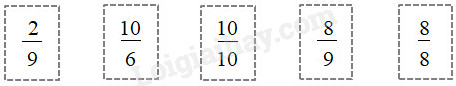 a) Tô màu vào ô chứa phân số bé hơn 1: