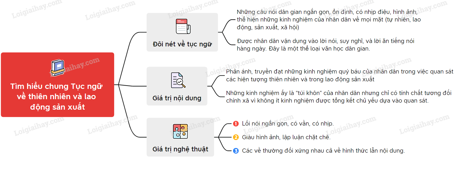 Sơ đồ tư duy Tìm hiểu chung Tục ngữ về thiên nhiên và lao động: