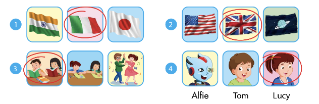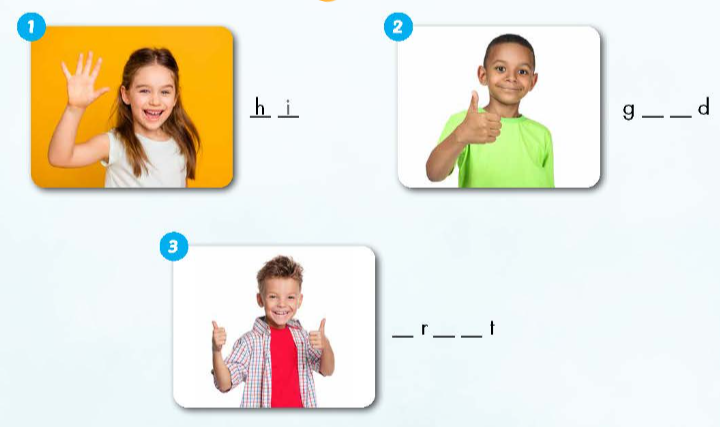 Write the missing letters to complete the alphabet. Listen and write. Look and write. Look and read. Put a tick or a cross. Listen and circle. Draw lines. Complete the words. Write the answer.